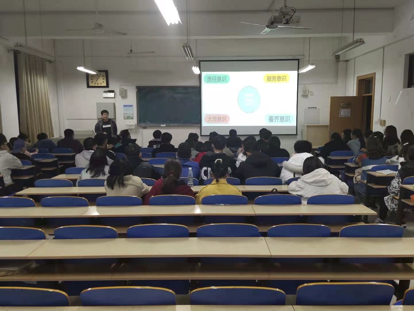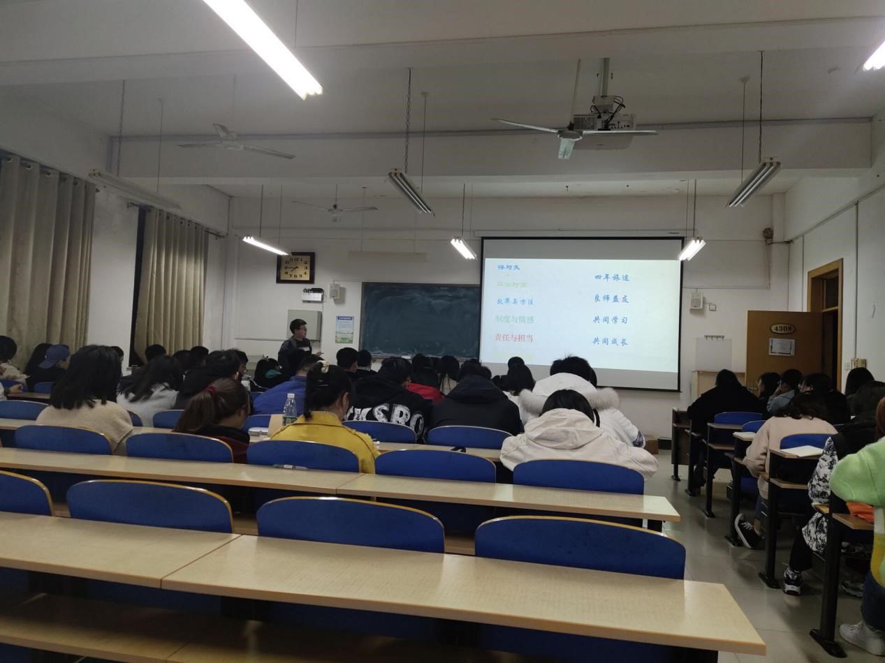 会议开始,周子豪围绕“服务班级”这一主题层层展开,并详细地从四个意识来阐述班委的职责与工作作风,帮助同学们全面、深入认识班委在班级中扮演的角色,现场气氛愉快而热烈。随后,周子豪又从班委的时间管理、责任与担当、效率与方法等多个方面深入剖析了如何做一名优秀的班级干部,使同学们受益匪浅。