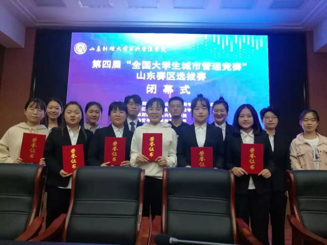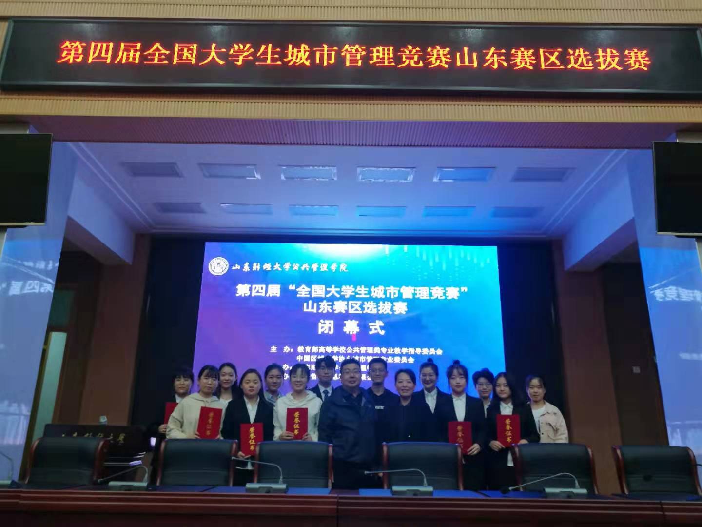 10月12日,2019年第四届全国大学生城市管理竞赛山东赛区选拔赛在山东财经大学燕山校区落下帷幕,本次比赛有山东大学、山东师范大学、山东科技大学、青岛科技大学、济南大学、曲阜师范大学、山东农业大学及山东财经大学等众多知名高校参加。我院共有10个团队参加山东赛区选拔赛。经过两天的激烈比拼,我院团队脱颖而出,取得了一个一等奖,四个二等奖,五个三等奖的可喜成绩。其中,五个团队挺进国赛,将在11月份天津南开大学与来自全国的团队展开角逐。